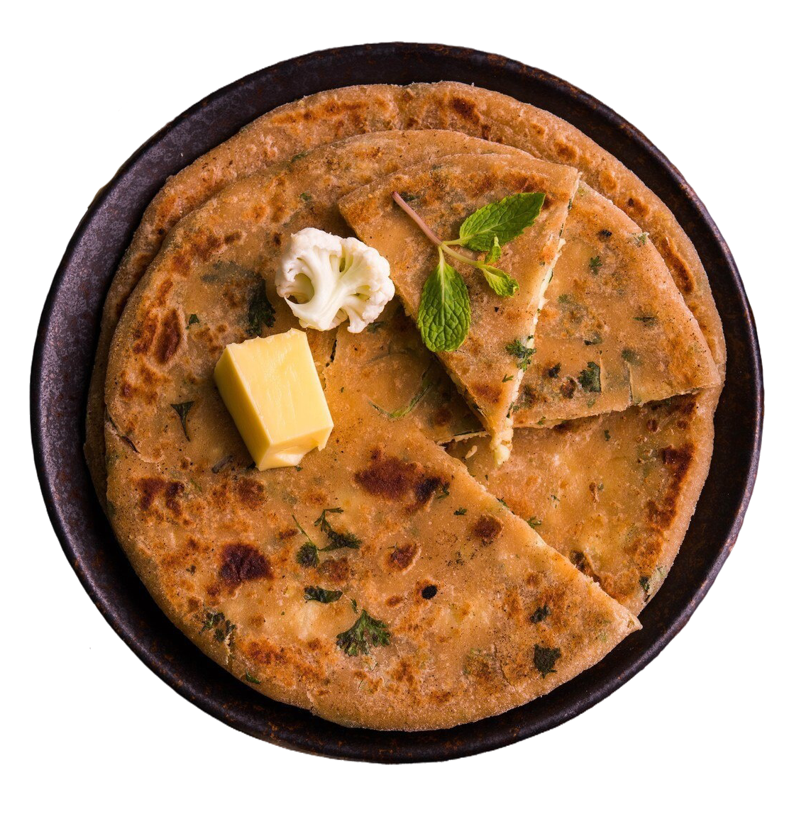 Aloo Paratha is a stuffed Indian flatbread filled with spiced mashed potatoes, cooked on a griddle with ghee or butter—comforting.